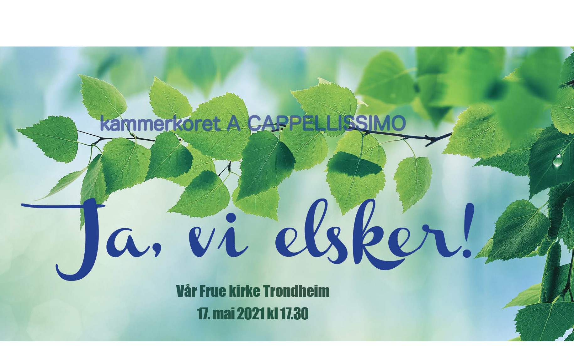 A Cappellissimo med gjester fra Midtnorsk Symfoniorkester.Vi elsker landet vårt, at det blir vår og snart vaksine! Kammerkoret A Cappellissimo elsker å synge våre nasjonalskatter – for et levende publikum! Derfor er A Cappellissimo stolt av og forventningsfulle til å kunne invitere 100 gjester til konsert i Vår Frue kirke den 17. mai.